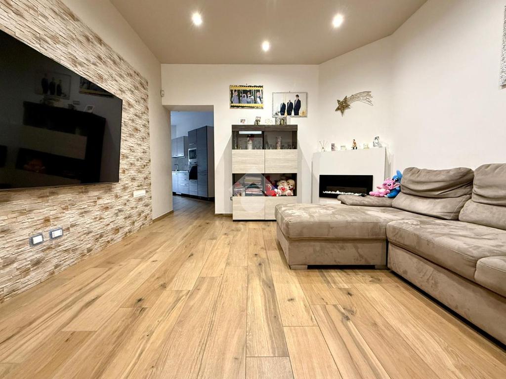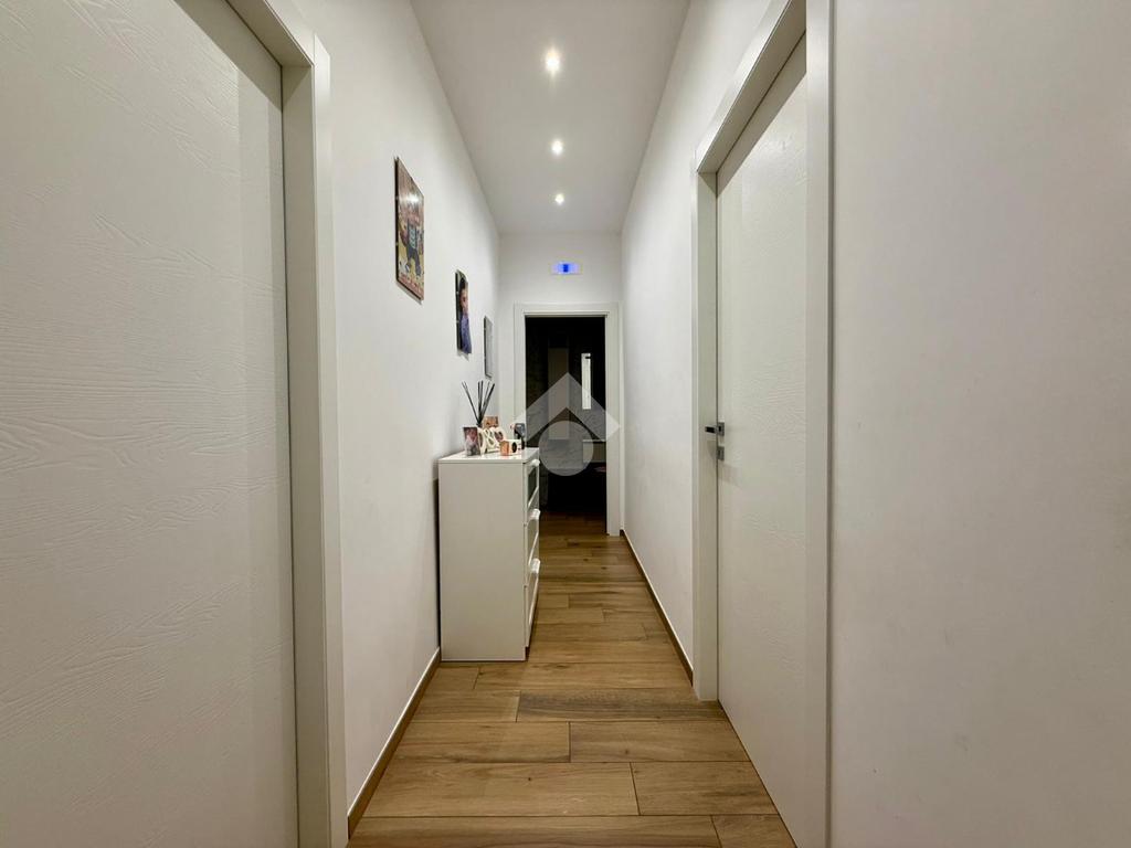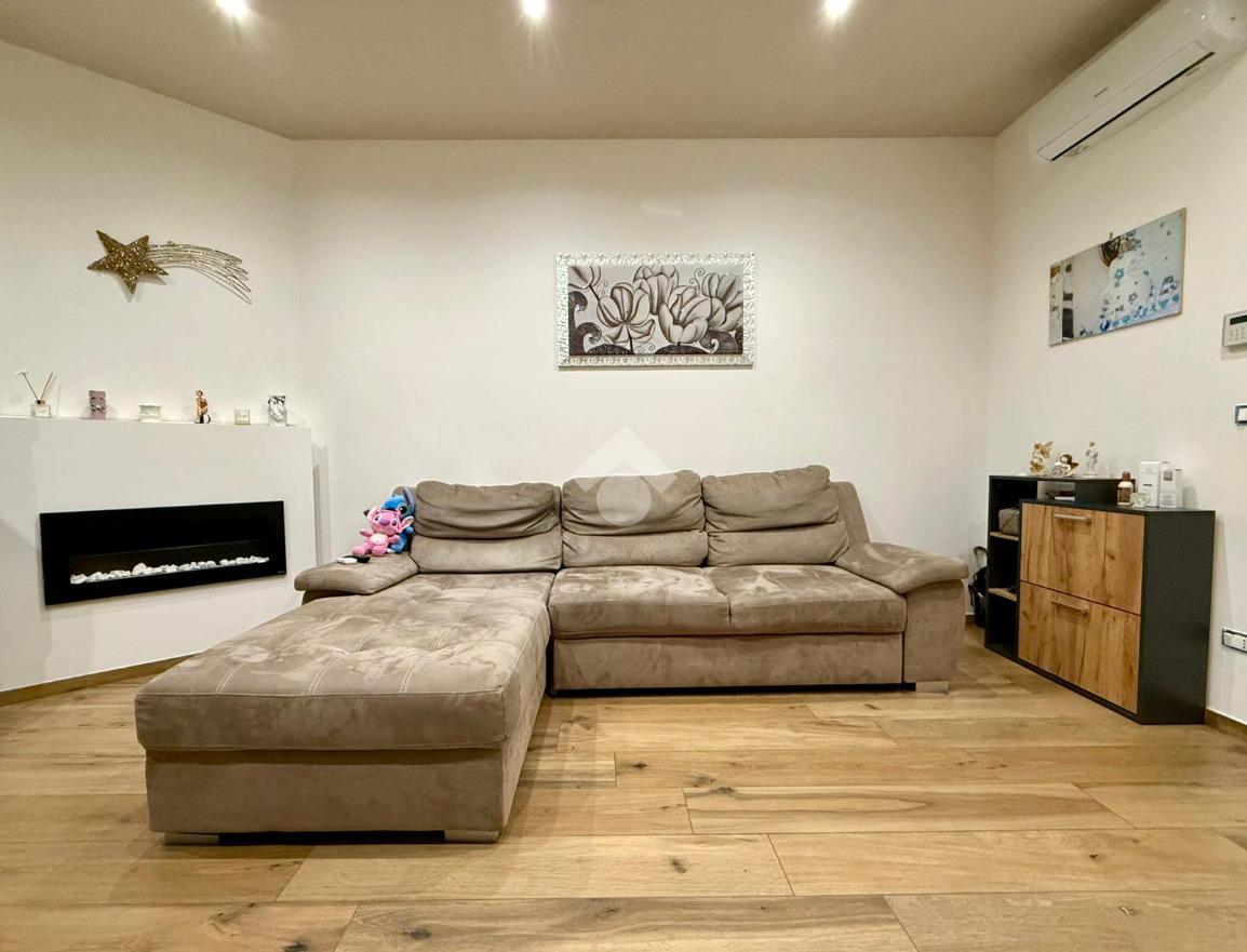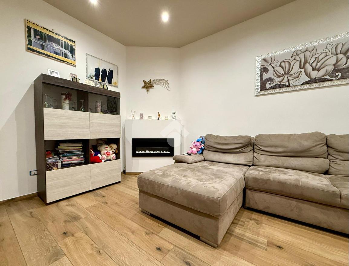 Gli interni, curati in ogni minimo particolare, accolgono con un raffinato pavimento in gres porcellanato effetto legno e una luminosa controsoffittatura con faretti a LED che valorizza gli ambienti. Il termo camino a bioetanolo arreda con stile la zona living, creando un’atmosfera calda e suggestiva. Il bagno, spazioso e con sanitari sospesi, è impreziosito da una doccia dotata di cromoterapia. Dotato di riscaldamento a pavimento e due condizionatori, l’appartamento offre il massimo comfort in ogni stagione. Le tapparelle elettriche, il videocitofono e l’impianto di allarme garantiscono sicurezza e praticità, mentre la lavanderia esterna rappresenta una soluzione funzionale e discreta.