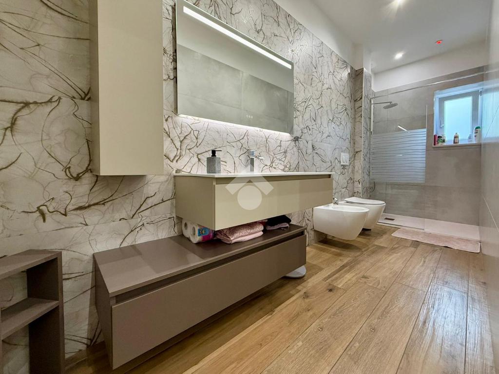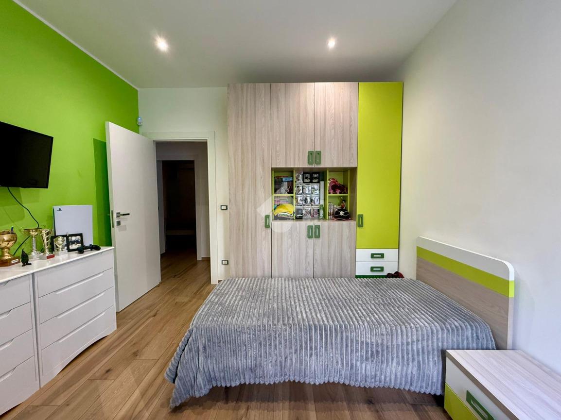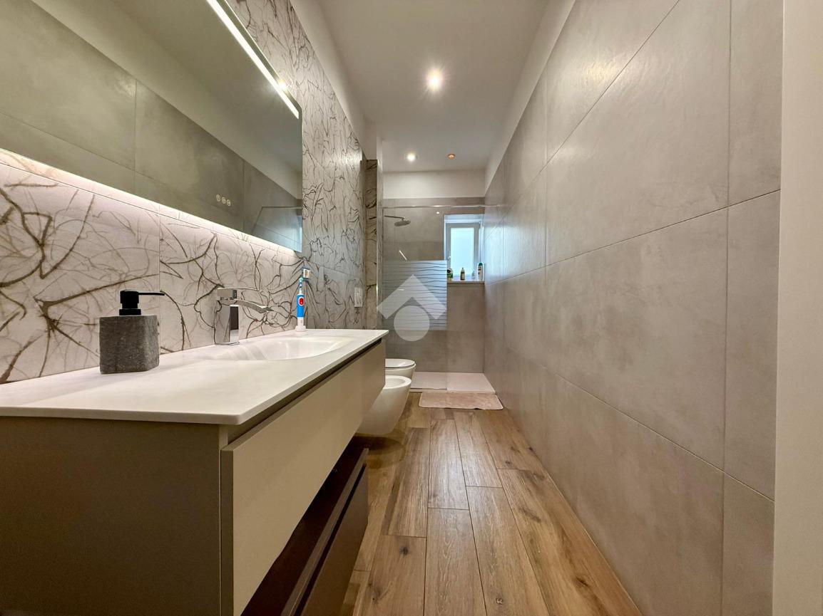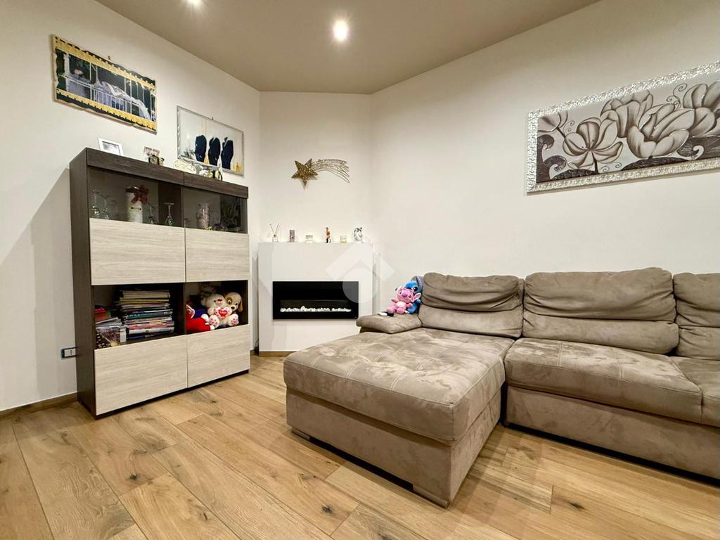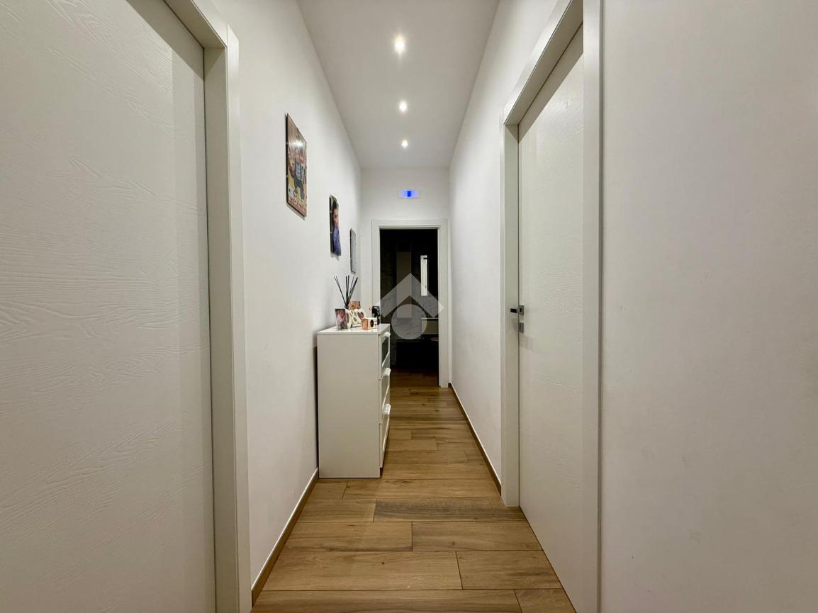 Gli interni, curati in ogni minimo particolare, accolgono con un raffinato pavimento in gres porcellanato effetto legno e una luminosa controsoffittatura con faretti a LED che valorizza gli ambienti. Il termo camino a bioetanolo arreda con stile la zona living, creando un’atmosfera calda e suggestiva. Il bagno, spazioso e con sanitari sospesi, è impreziosito da una doccia dotata di cromoterapia. Dotato di riscaldamento a pavimento e due condizionatori, l’appartamento offre il massimo comfort in ogni stagione. Le tapparelle elettriche, il videocitofono e l’impianto di allarme garantiscono sicurezza e praticità, mentre la lavanderia esterna rappresenta una soluzione funzionale e discreta.