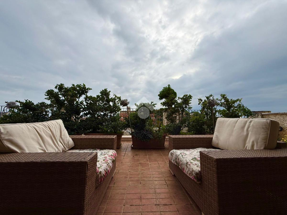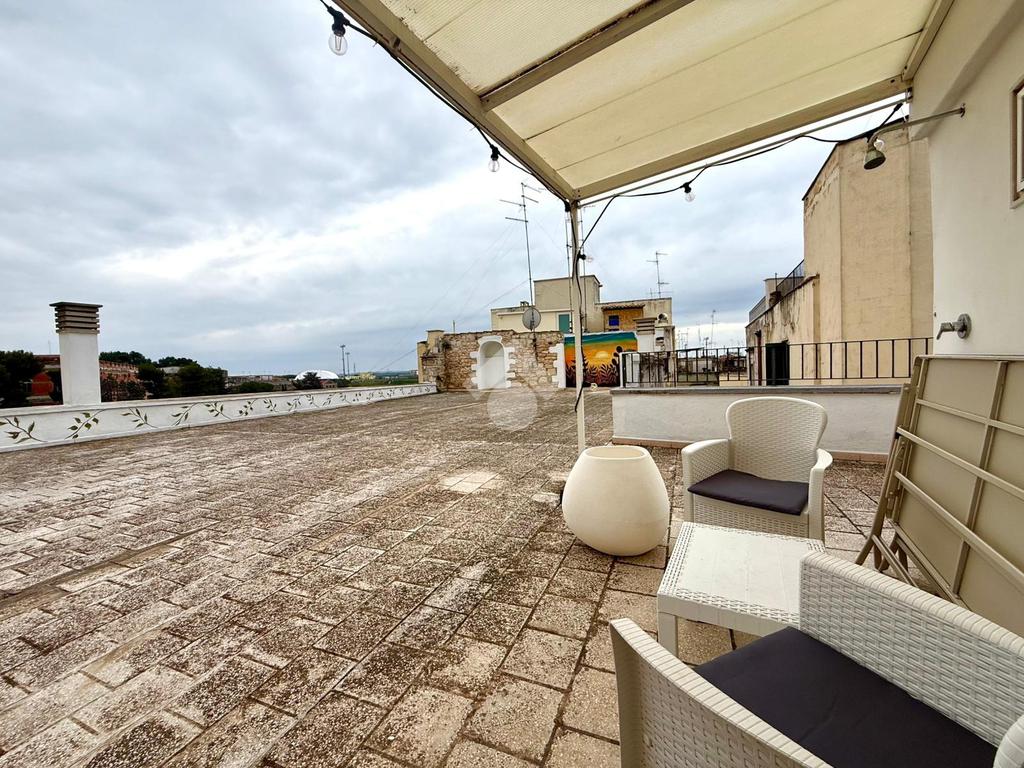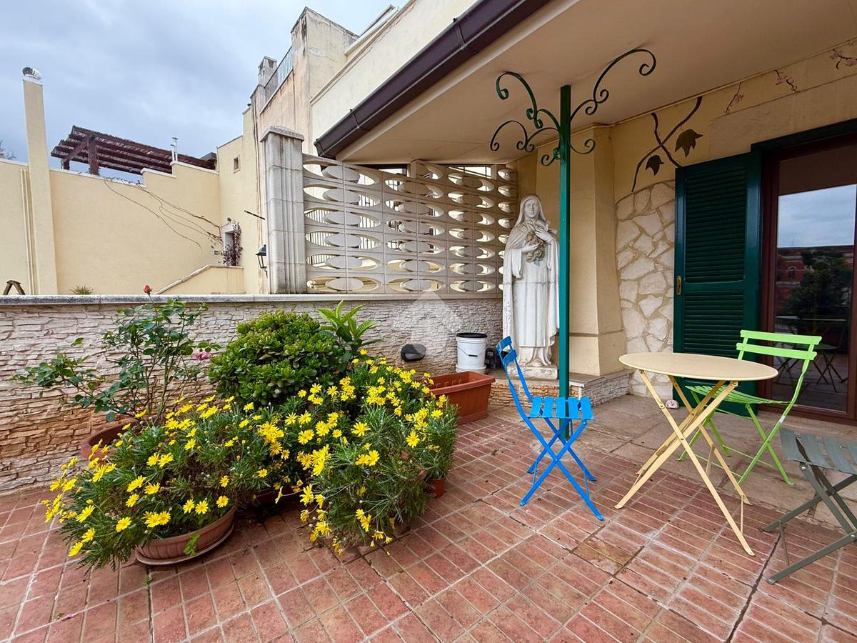 Salendo al secondo piano si scopre una dependance con vista panoramica, impreziosita da un caratteristico soffitto con travi in legno, pavimento in cotto smaltato azzurro, un bagno e soprattutto un accesso diretto al vasto lastrico solare di oltre 200 mq, completamente di proprietà esclusiva. Uno spazio scenografico che domina la Lama Balice e che offre infinite possibilità: dalla creazione di un rooftop privato all’allestimento di zone relax, passando per idee imprenditoriali di grande fascino come un ristorante con vista.