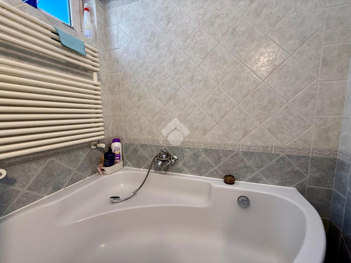 Il bagno ampio, con vasca e sanitari a pavimento, è un ambiente confortevole e ben organizzato, pensato per i momenti di relax quotidiano. Completa la proprietà una comoda cantinola, ideale come spazio di servizio.